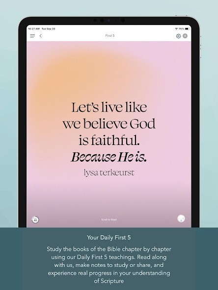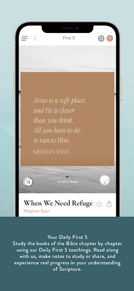 First 5 is specifically designed to greet you with a short teaching in God’s Word daily before you get distracted by social media and everything else competing for your attention. It’s our hope you create a daily habit of reading God’s Word through your time spent in the First 5 app.Features