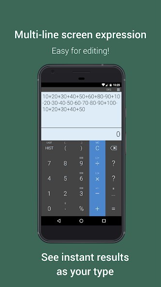 Mobi Calculator is a free calculator for android for everyone who appreciate great usability and functionality.Working with the calculator brings pleasure, since the easy to use interface is thought through to trifles. This is a simple calculator that will suit both school childrens, students and in work, and for everyday household calculations.